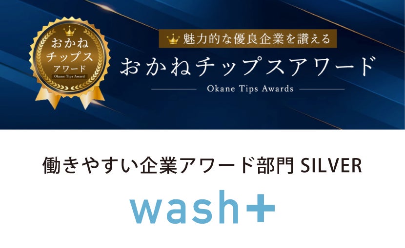 株式会社ふるさと本舗(本社:東京都渋谷区恵比寿、代表取締役CEO:河合玄樹)が運営するインターネットメディア「おかねチップス」が実施した「おかねチップスアワード」において、株式会社wash-plus(本社:千葉県浦安市、代表取締役:高梨健太郎)が働きやすい企業アワード部門 SILVERに認定されました。