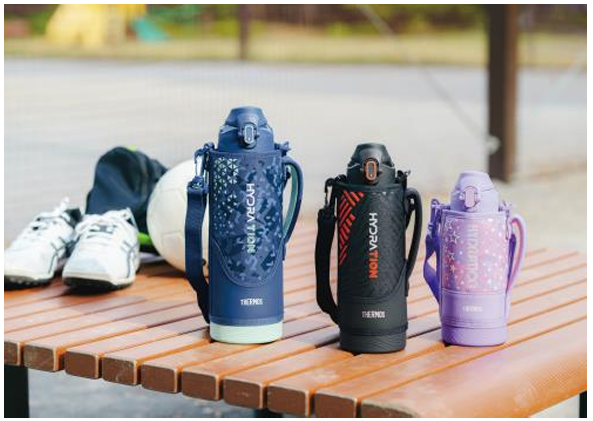 「両手飲み」でもすべりにくく安定して飲める「グリップサポート」を採用!さらに肩の負担を軽減する『サーモス ショルダーパッド(API-002)』がカラーリニューアル