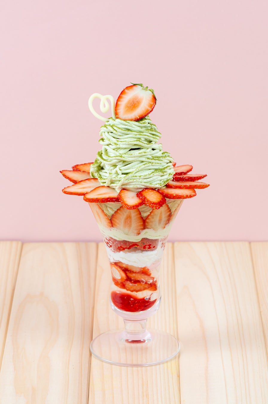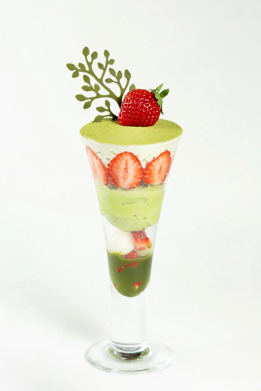 フルーツ専門店が提供する、抹茶といちごのハーモニーを楽しめるパフェ