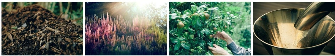 園(有機 JAS 認証取得)で育てられた有機栽培の植物、古くから自生し必要以上に手を加えない自然栽培で