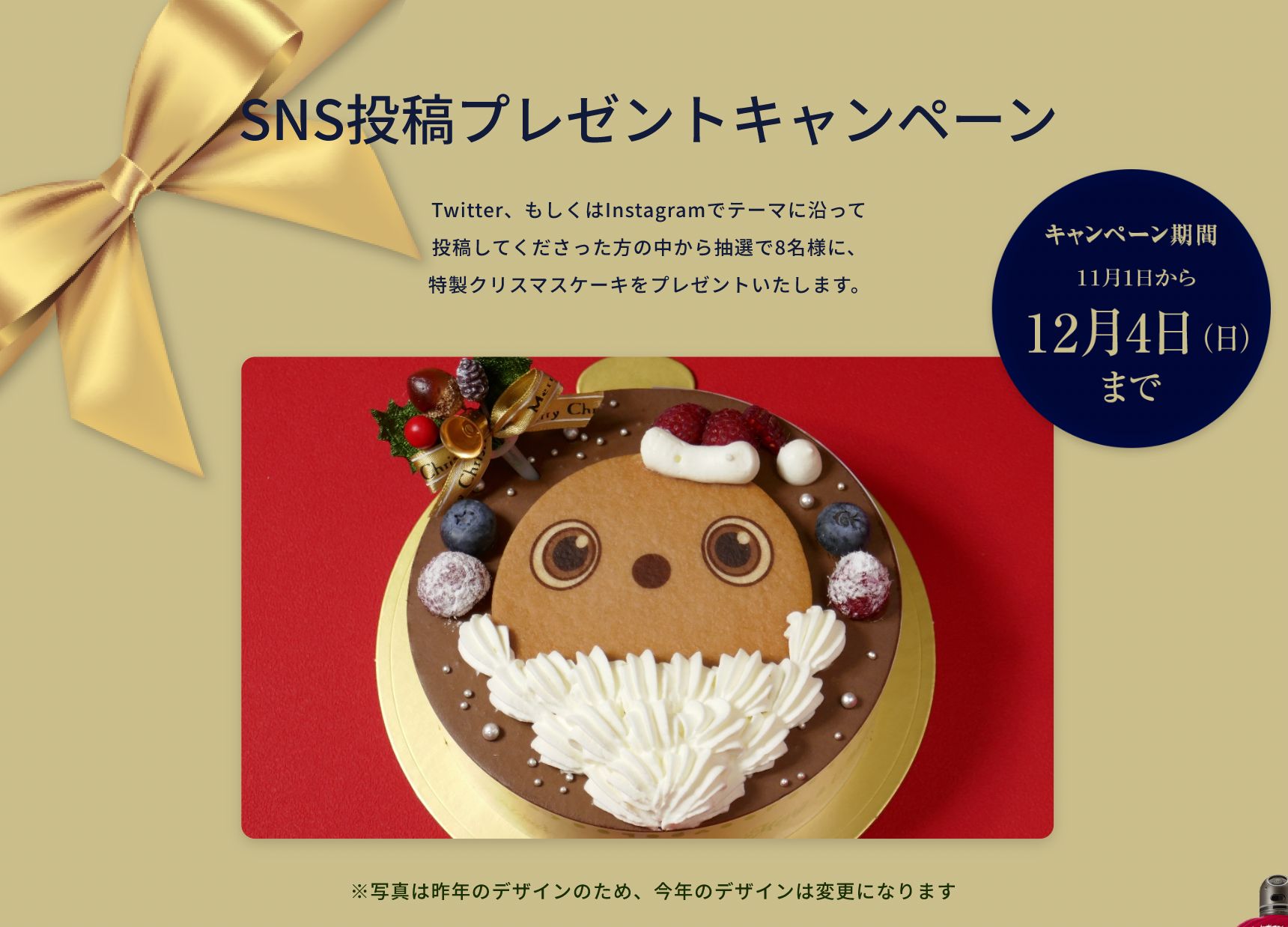 ※2022年のクリスマスケーキは現在制作中です。写真のケーキからはデザインが変更となりますのでご了承ください。