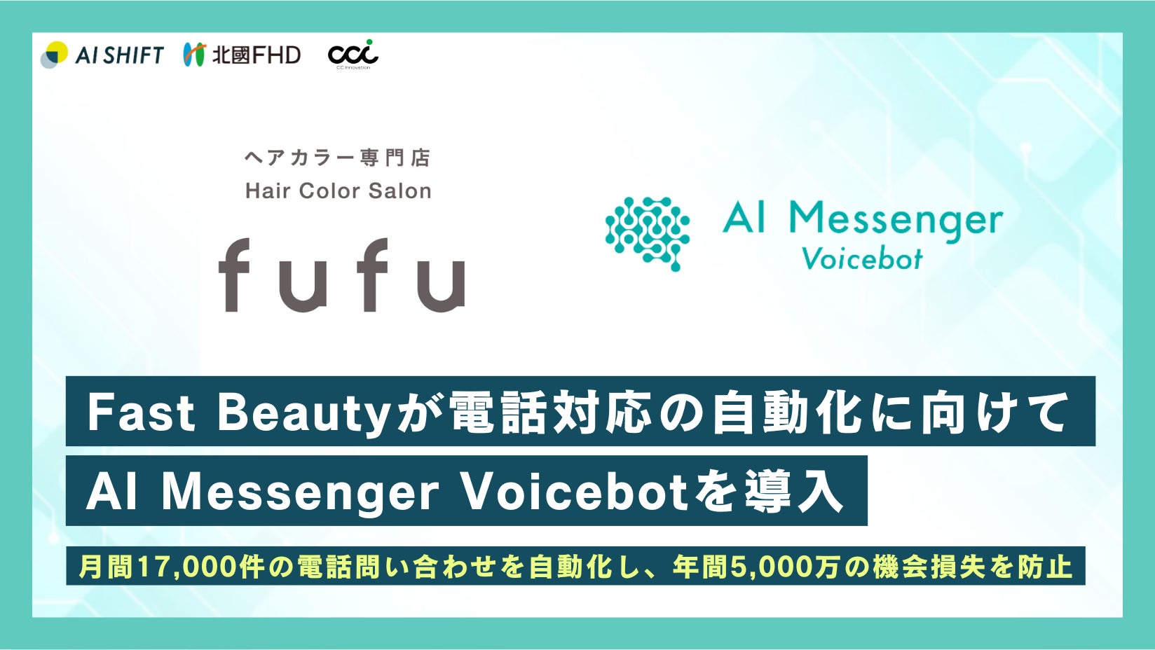 ヘアカラー専門店fufu(フフ)を運営する株式会社Fast Beauty(以下、Fast Beauty)は、AIエージェントを提供する株式会社AI Shift(以下、AI Shift)のコールセンター向けAIエージェント「AI Messenger Voicebot」を株式会社北國銀行及び株式会社CCイノベーションの支援の元、7月より一部店舗での運用を開始することをお知らせいたします。