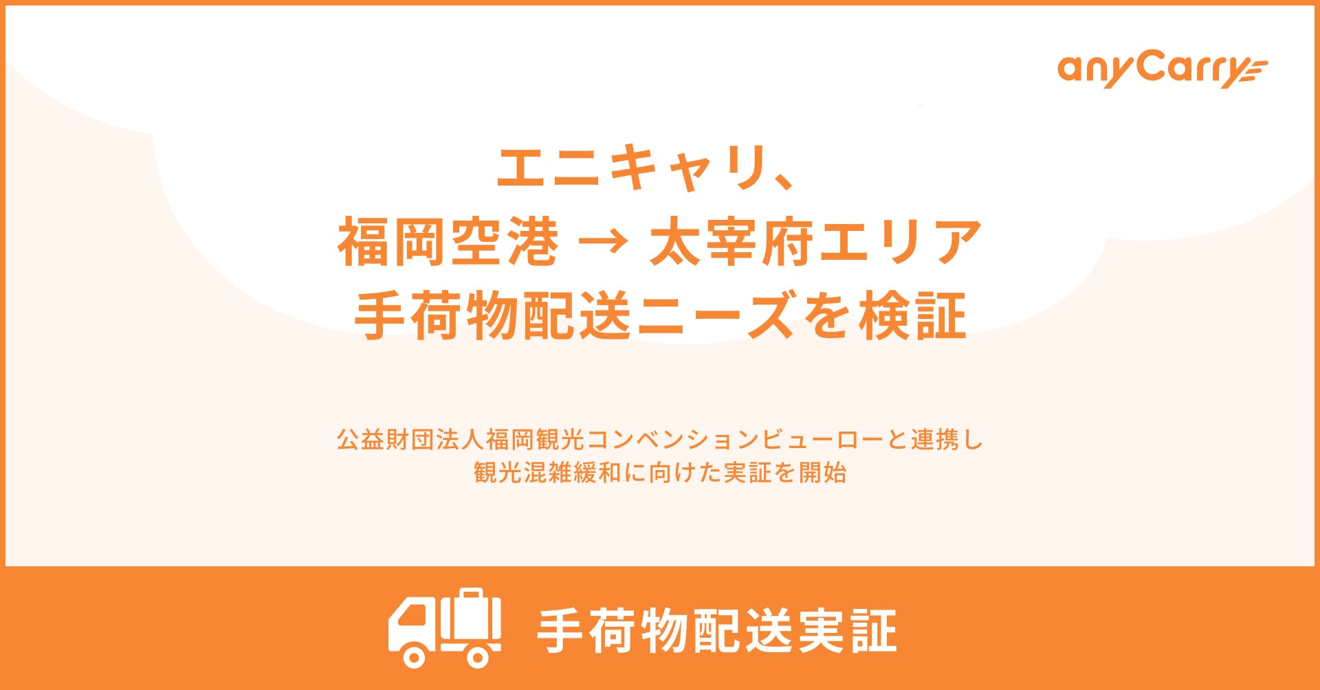 株式会社エニキャリ(以下、エニキャリ)は、公益財団法人 福岡観光コンベンションビューロー(以下、FCVB)と連携し、街中から「スーツケース」をできるだけ減らし、観光客・住民ともに快適な地域を目指す取り組みの一環として福岡空港から太宰府天満宮エリアへの手荷物配送に関する需要を検証する実証を、2026年2月1日〜2月28日の期間限定で実施します。