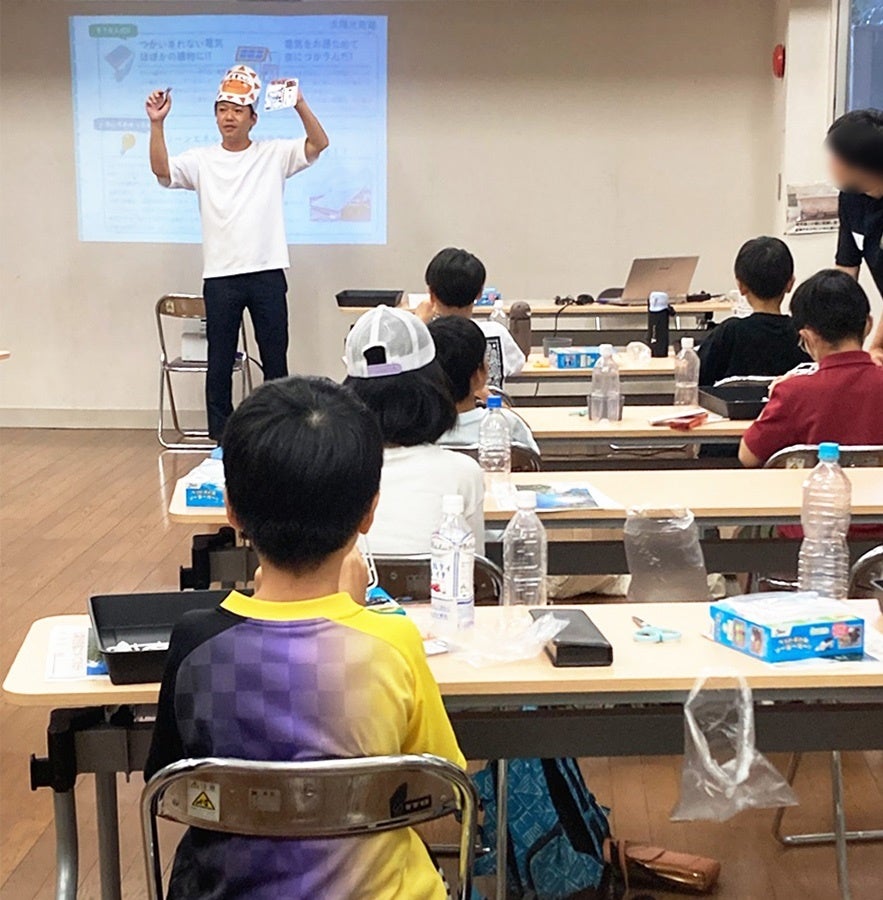 今回のイベントでは、小学生の夏休みの自由研究を応援する企画として、JKKで太陽光発電設備の設置を担当している社員が講師となり、再生可能エネルギーや電気自動車の仕組みについて一緒に学ぶことで環境配慮について考えることを目的としています。