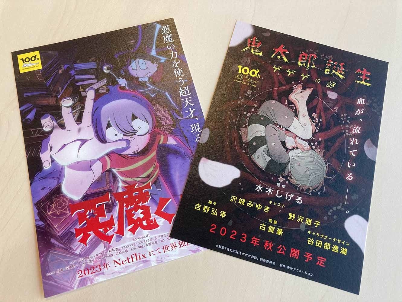 そして、今回の上映では来場者特典としてお越しいただいた方には新作ビジュアルを用いたポストカードの配布を予定しております。今年劇場公開予定の『鬼太郎誕生 ゲゲゲの謎』とNetflixにて世界配信予定の「悪魔くん」のティザービジュアルを使用した来場者特典のポストカードは数量限定の為、ご注意下さい。