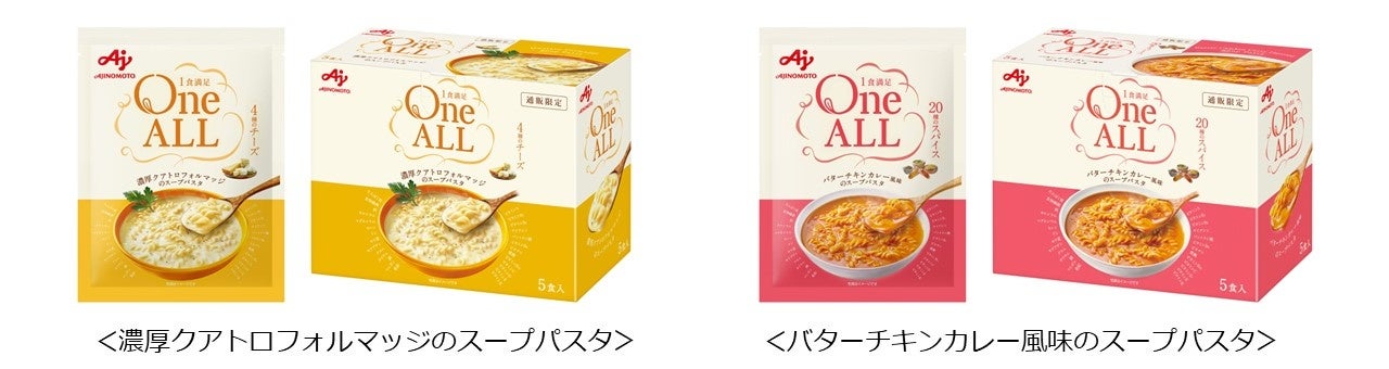<濃厚クアトロフォルマッジのスープパスタ><バターチキンカレー風味のスープパスタ>2024年1月18日(木)よりD2Cチャネル(AJI MALL)限定で販売開始