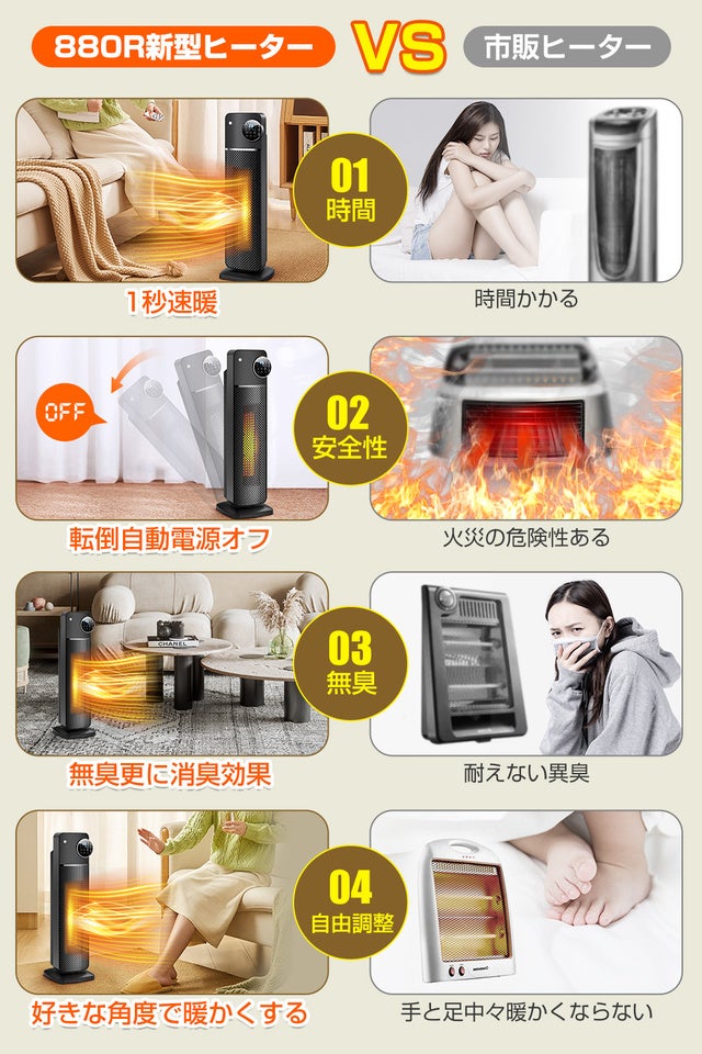 首振り機能付き、もっと広範囲に温まる1台!