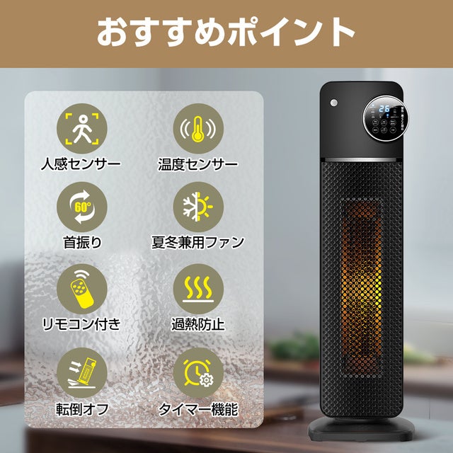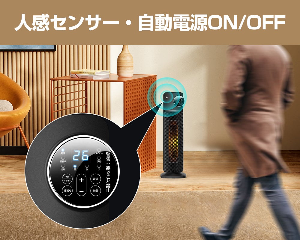 人感センサー付きで節電も!速暖ですぐに暖かくなるセラミックファンヒーター登場。
