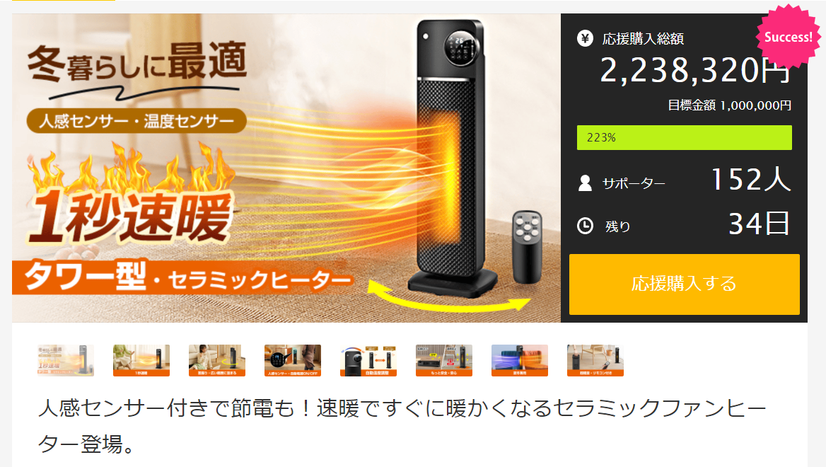 【1秒速暖】|人感センサー付きセラミックファンヒーター「Makuake」にて【応援購入総額600万突破!】