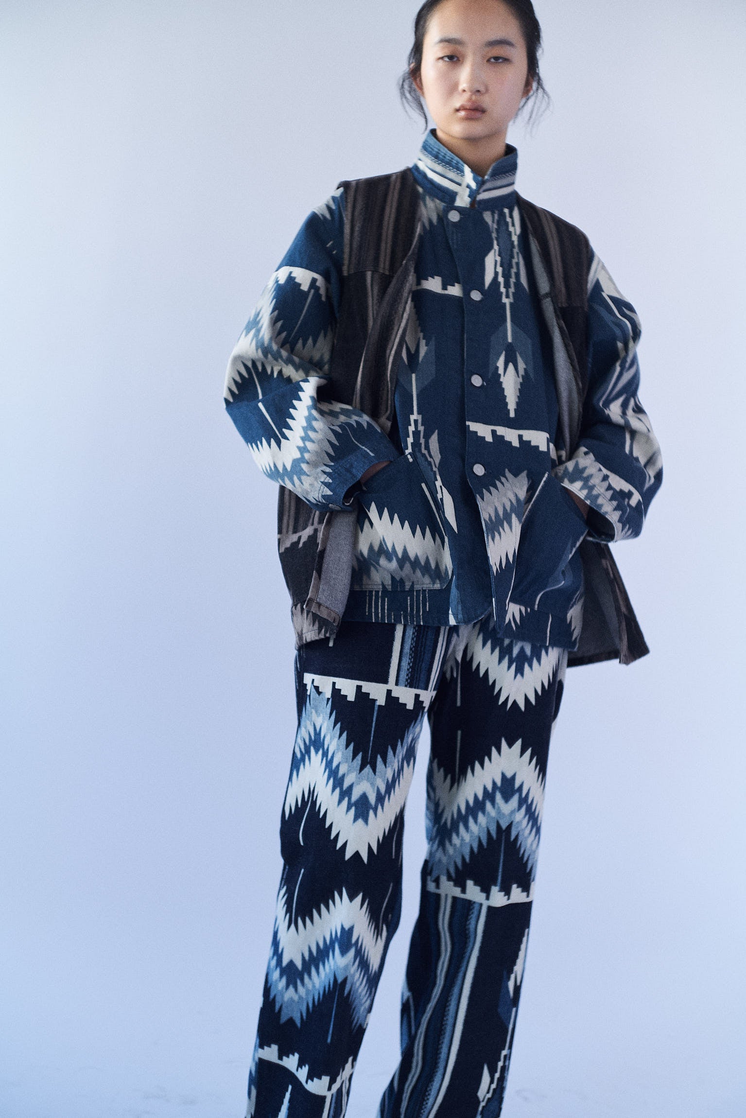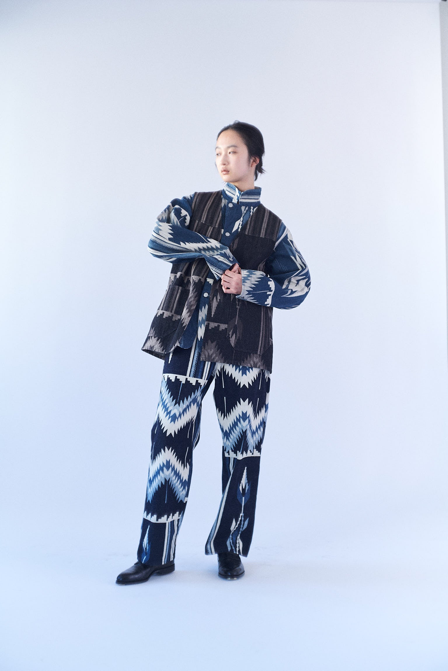 シリーズ第3弾となる今回のコレクションでは、京友禅職人の高い染色技術を最大に活かし、インディゴデニム、硫化デニム、ブラックデニムのそれぞれ表情の異なるデニムに段落ち抜染加工を施し、3つの繊細な色を表現。