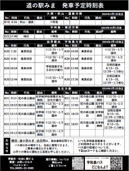 ・設置場所:「道の駅みま」バス停(〒798-1114 愛媛県宇和島市三間町務田)