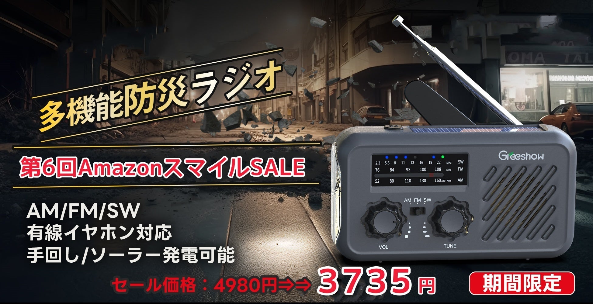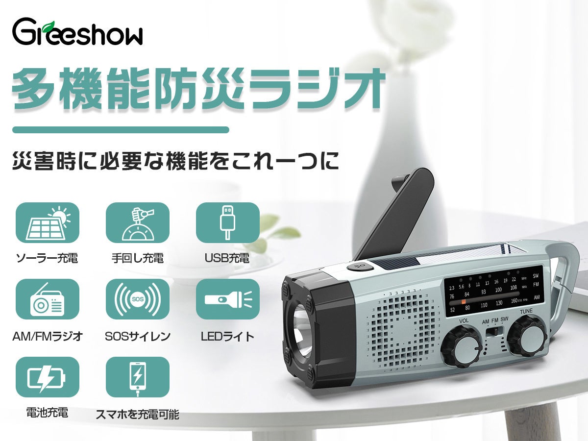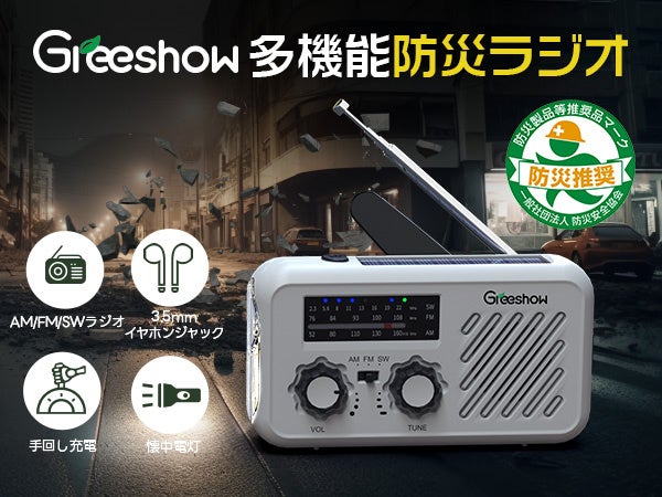 『あの時ラジオがあれば...』Greeshow 防災ラジオ、大切な家族の為の災害時の備え!5月23日 12時~6月2日 23時59分までの特別割引」