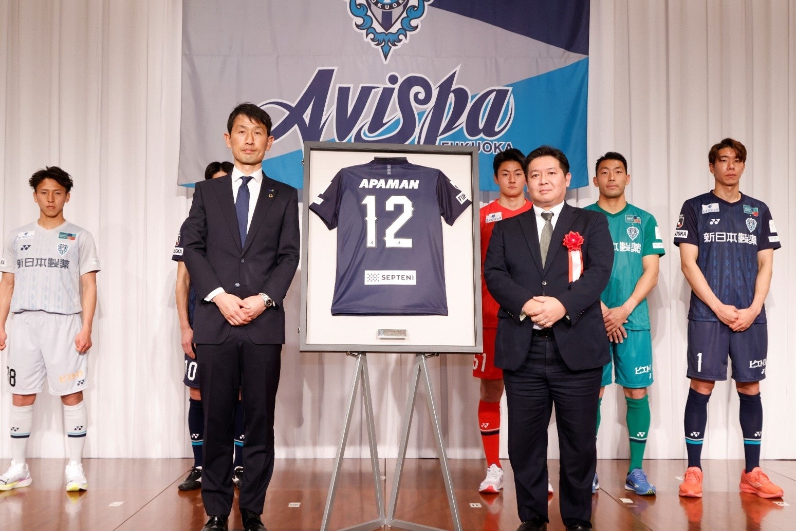 この度、アビスパ福岡株式会社(本社:福岡市)は、APAMAN株式会社(本社:東京都千代田区)と2025シーズンのプレミアムユニフォーム・パートナー契約を更新いたしましたので、お知らせいたします。2025シーズンも引き続き、公式ユニフォームスポンサー(背中)として同社ロゴを掲出いたします。