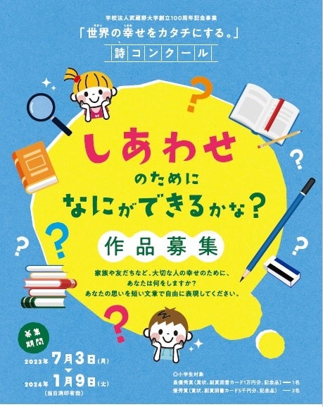 【学校法人武蔵野大学】創立100周年記念「『世界の幸せをカタチにする。』論文・作文・詩コンクール」を開催!