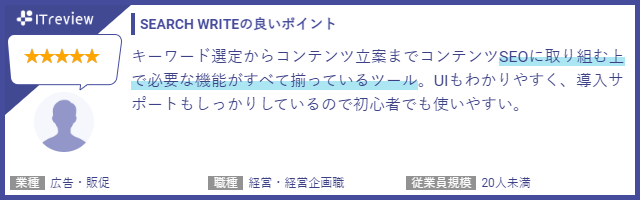 【ITreviewにおける「SEARCH WRITE」のアワード受賞実績】
