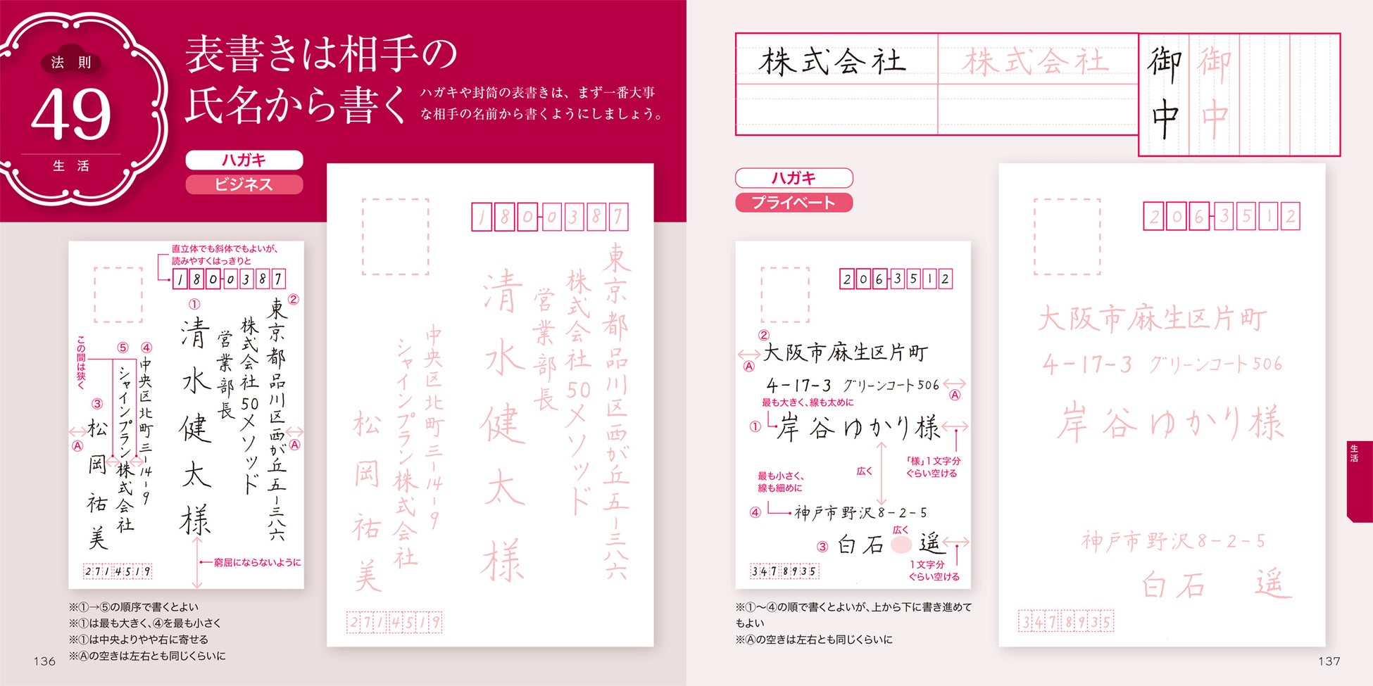 6章 生活 表書きは相手の氏名から書く/全体のスペースを見ながら書く