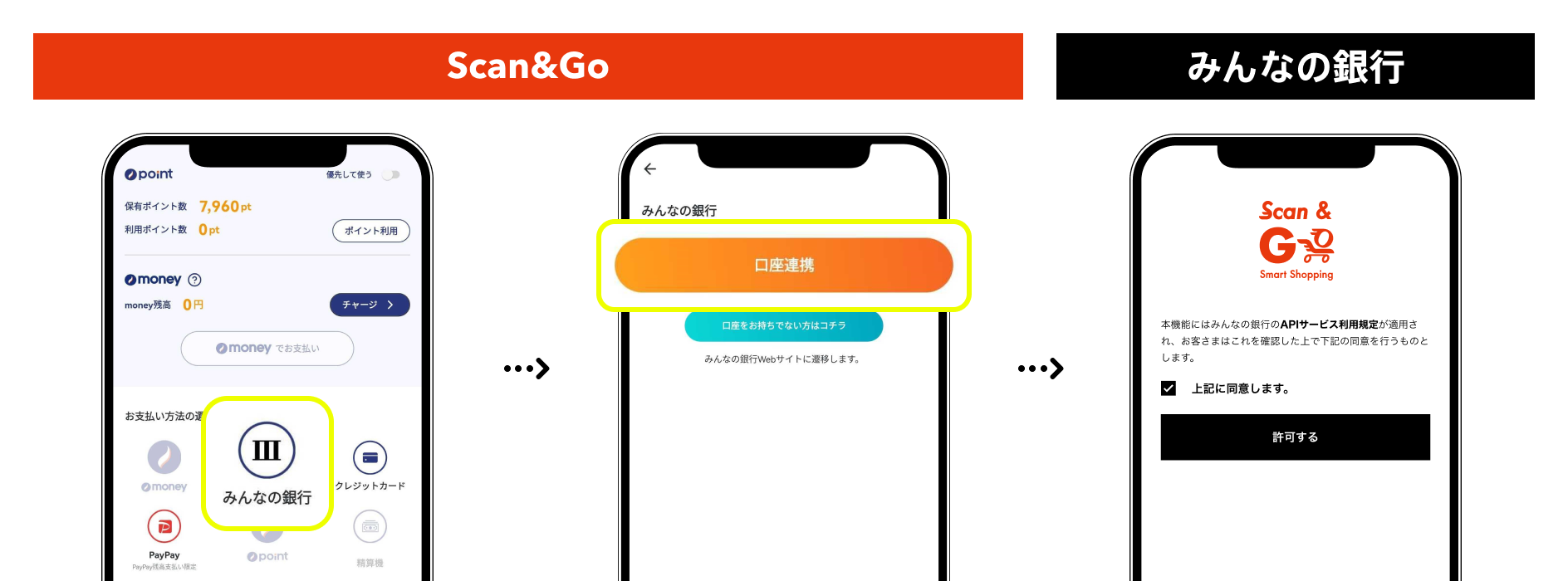 Scan&Go×みんなの銀行アプリ口座連携イメージ図