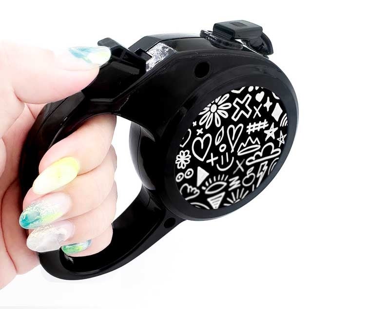 本体の中心部分の表裏2箇所にオリジナルのフルカラー印刷が施せます。ペットの写真やお気に入りのデザインを入れて、オリジナリティあふれる伸縮リード(リールリード)を作成しましょう。