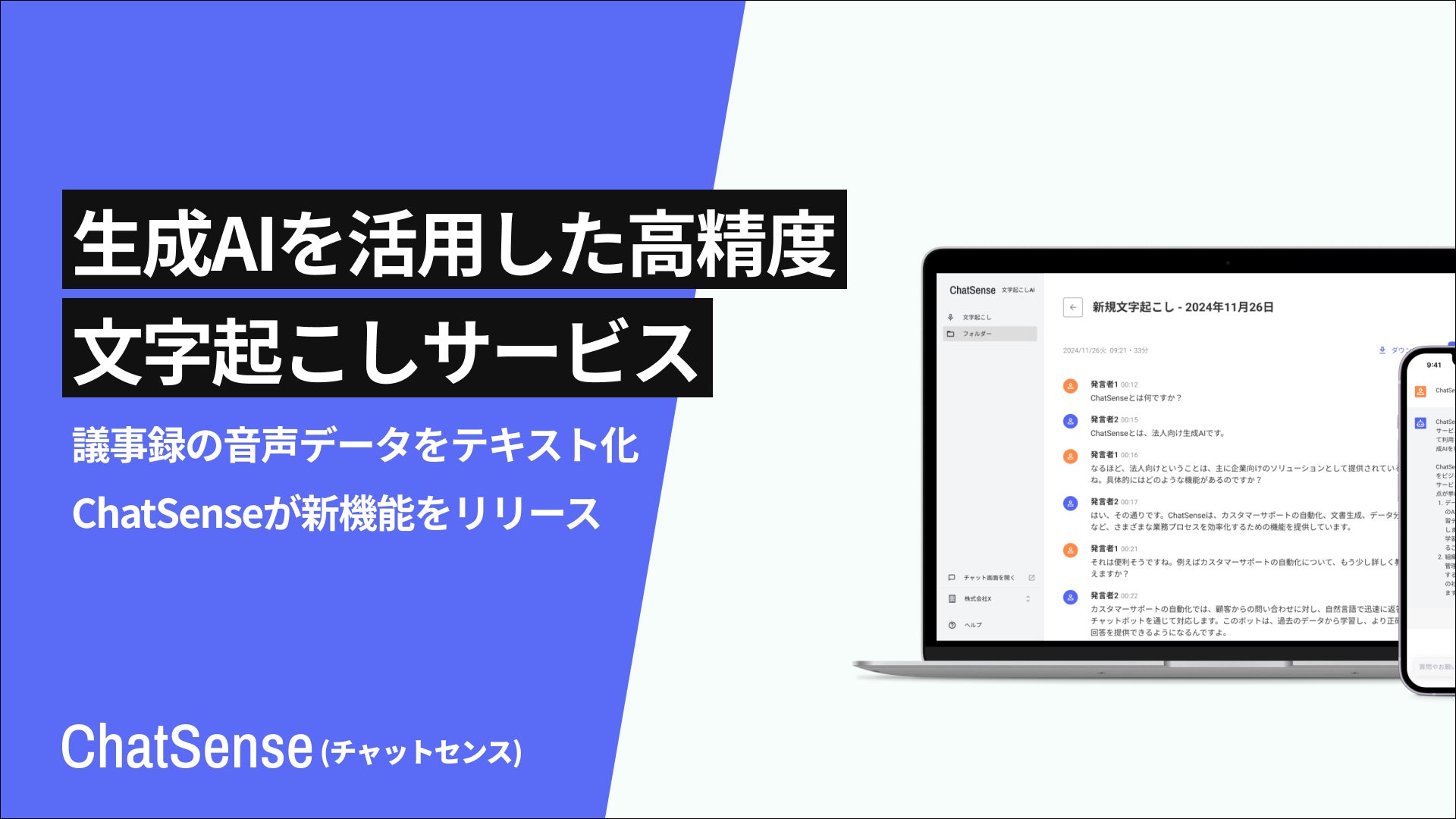 生成AIによる高精度な文字起こしサービス、β版をリリース。法人向け生成AI「ChatSense」の新機能。