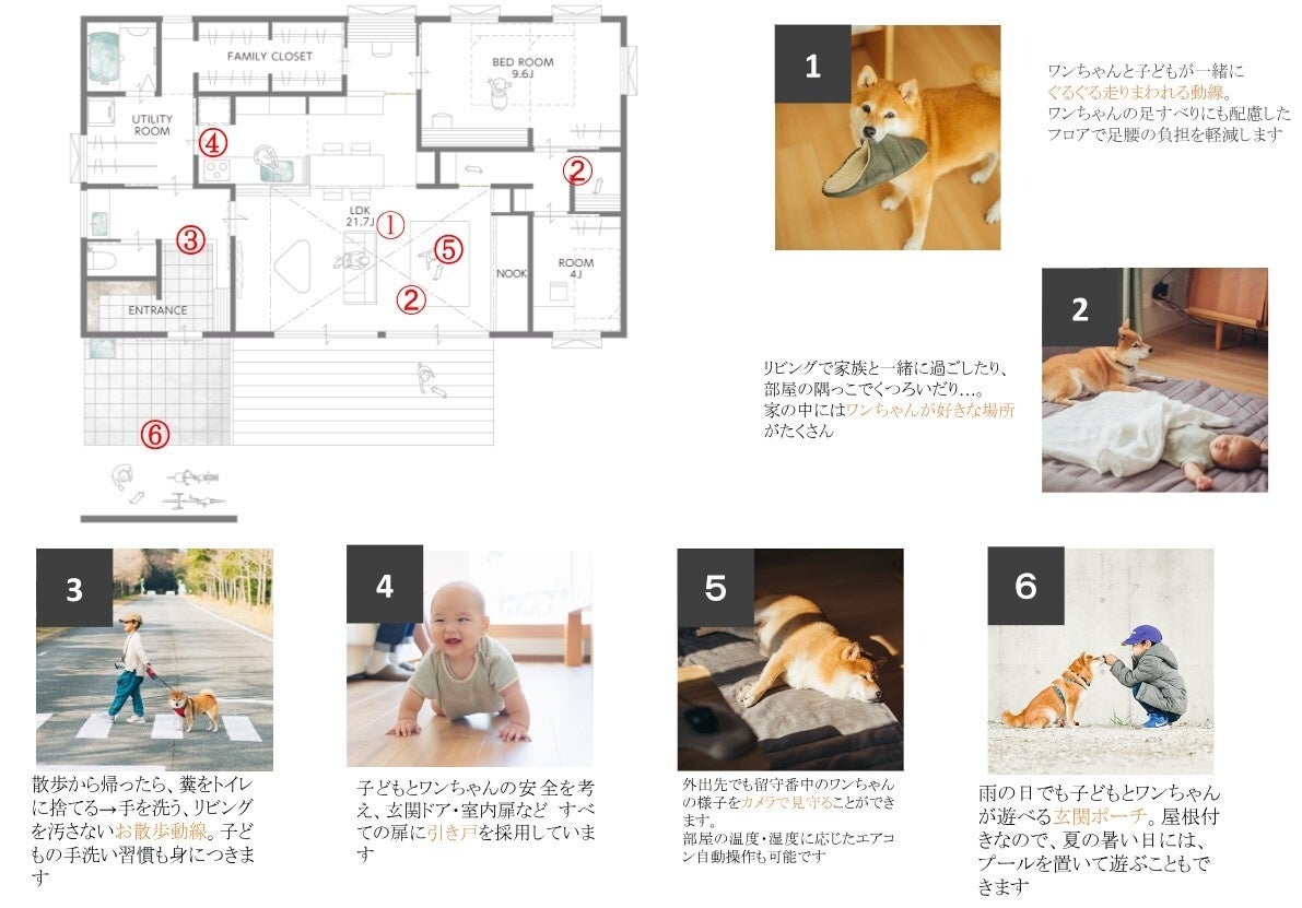 子どもとペットの暮らしやすさや安全性はもちろん、特に幼少期・学童期・思春期をペットと触れ合い過ごすことで、思いやりの精神や判断力・責任感など心の成長が期待できる提案となっています。