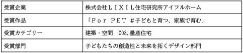 ■受賞作品「For PET #子どもと育つ、家族で育む」の概要