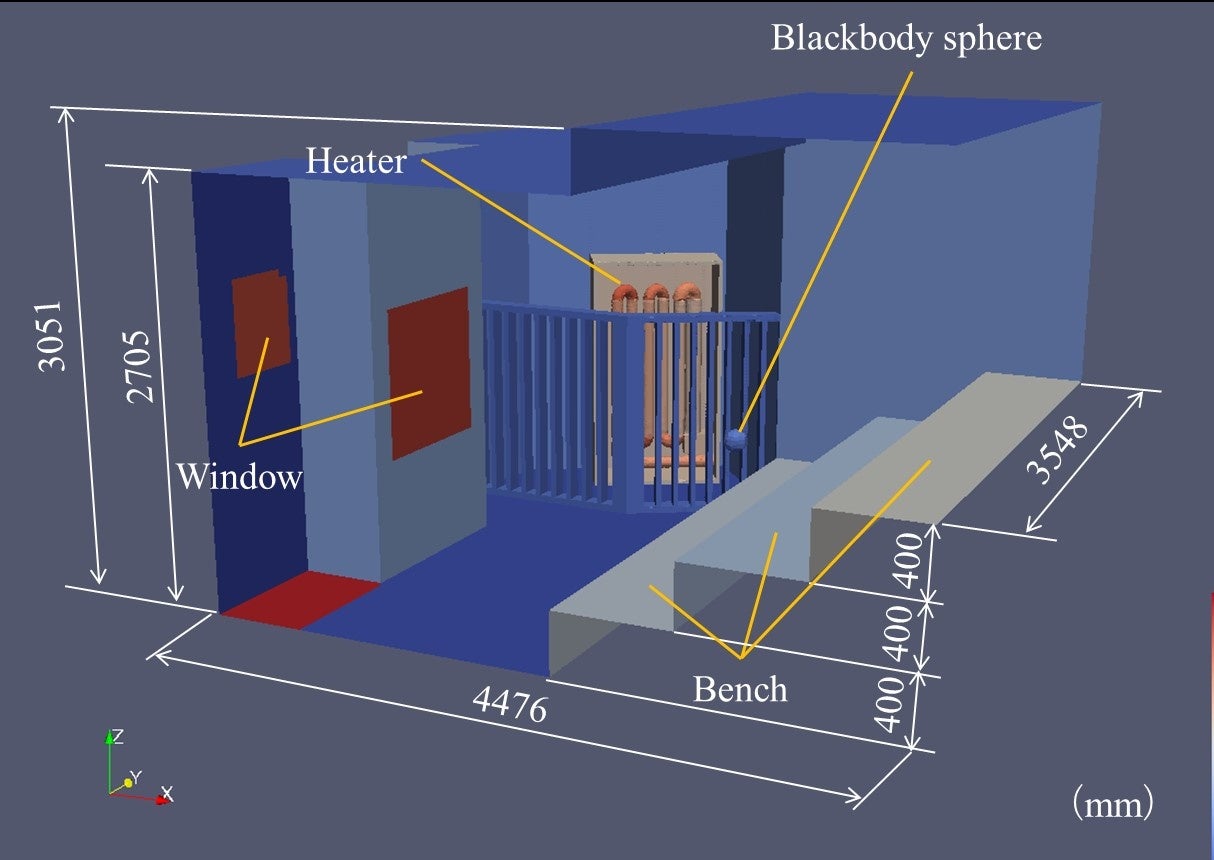石橋さんと古川助教の研究グループはサウナ繰り返し入浴時のヒートショック予防の科学的提言に向けて研究を行ってきました.具体的には地元銭湯のサウナ室でのフィールドワークやコンピュータシミュレーションによるサウナ室内部,人体周辺の伝熱現象の解析を行い,サウナ入浴時の人体深部温度の上昇量を評価しました.その結果、従来提案されてきた生体温熱モデル(※1)ではサウナのような極限的高温環境の人体深部温度を精度良く評価できず,モデルパラメータの調整やモデルの高度化が必要性であることを明らかにしました.