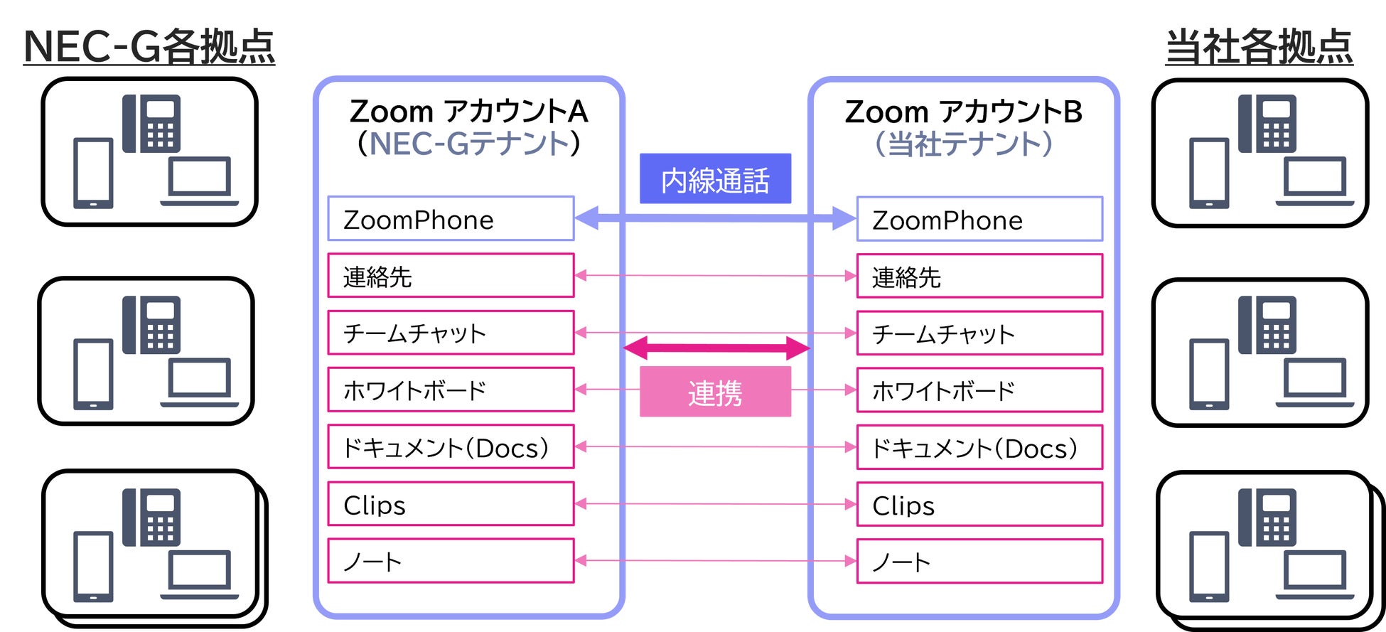 従業員の氏名や電話番号を「Zoom Phone」の複数(マルチ)テナント間で連携することで、