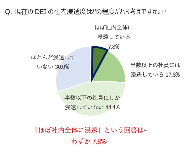 DEIの取り組みは85%以上だが、「社内全体に浸透」はわずか7.8%