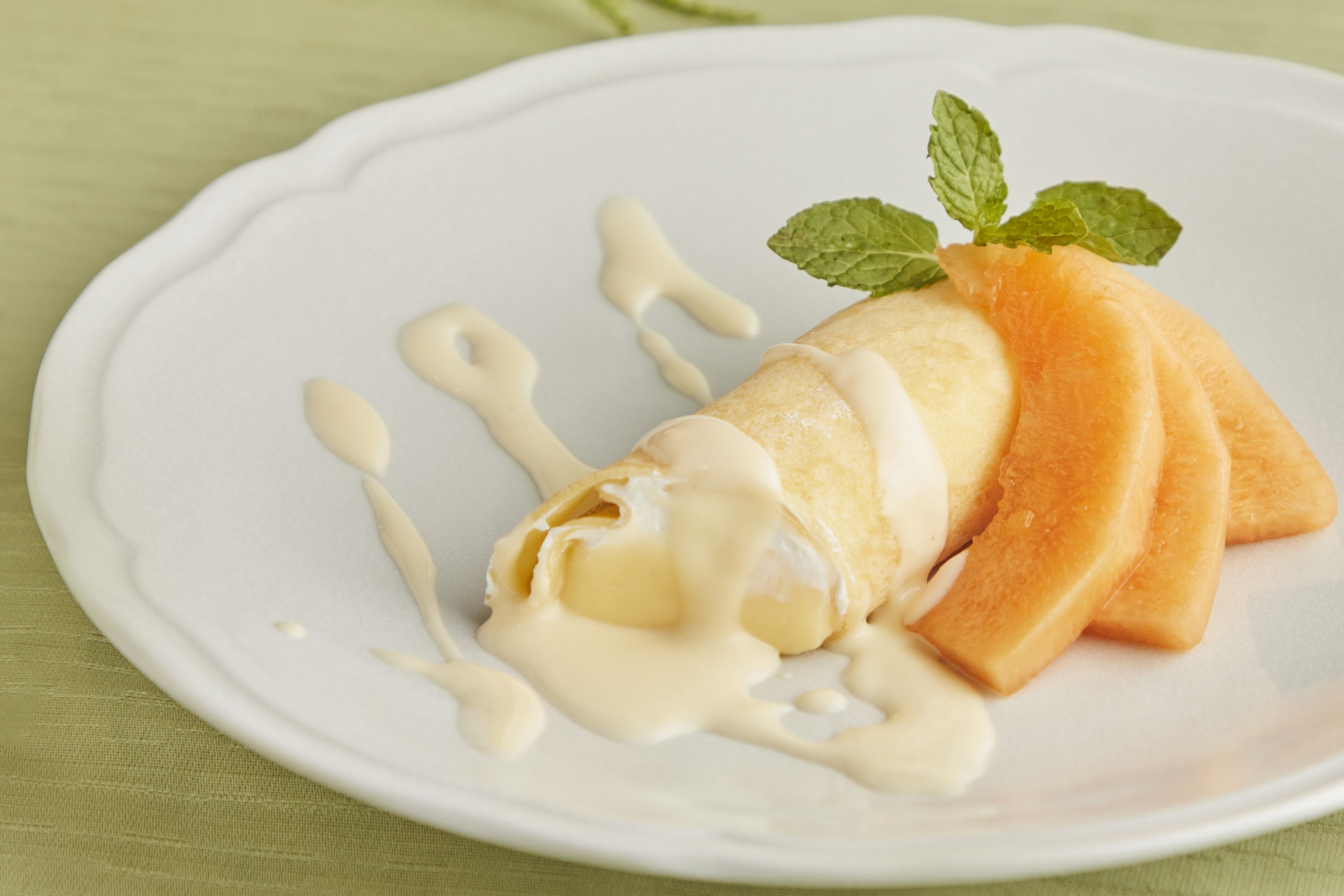 目の前で焼き上げる、もちもち食感の生地と甘くとけるような甘みのメロンを合わせた「メロンのガレット」、新鮮なメロンやクリームなどを優しく包み込んだ、メロンの芳醇な香りを楽しめる「クレープ」など、北海道産の赤肉メロンをはじめ、旬のメロンをふんだんに使ったメニューをご用意しております。