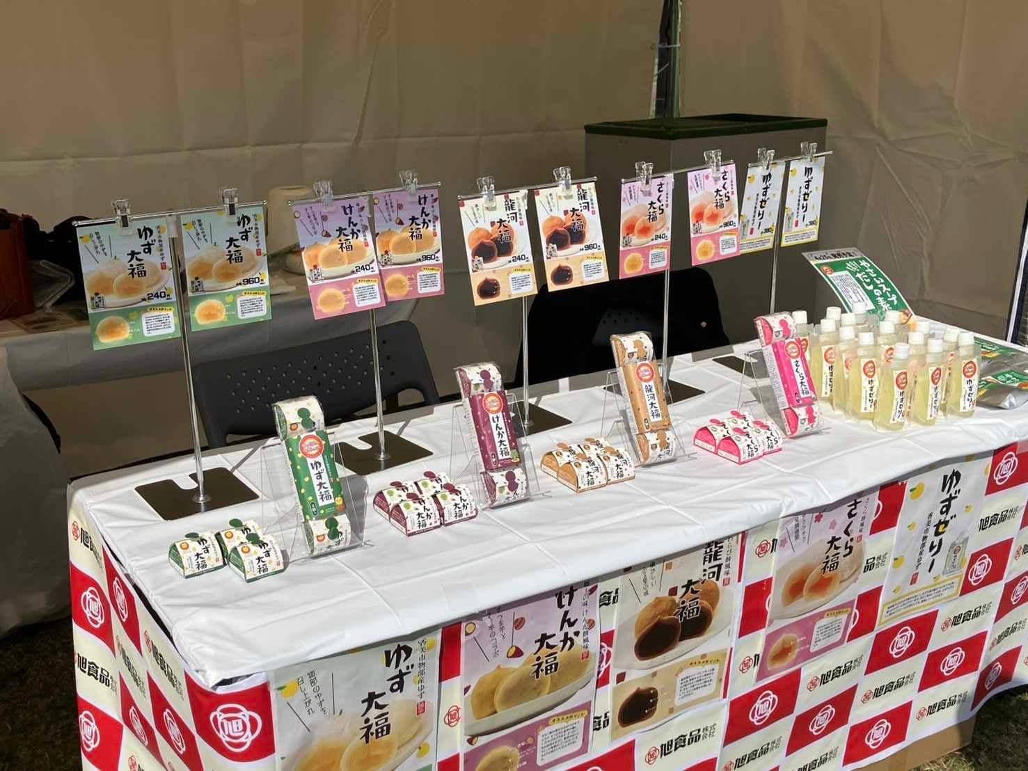 また商品の購入だけでなく、商品名に観光名所を連想させるものや、原材料に地元の特産品を使用することで、高知県・香美市の認知度向上を図るため、香美市物部産のゆずを使用した「ゆずゼリー」や「ゆず大福」、香美市の郷土料理「けんか餅」を再現した「けんか大福」、龍河洞をイメージして作った「龍河大福」、桜色のジュレで見た目も華やかな「さくら大福」と、楽しく美味しい商品が揃いました。