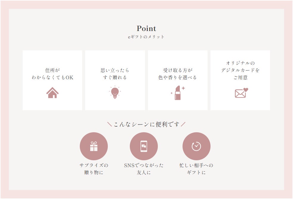 商品ページで「住所を知らない相手にeギフトで贈る」を選択するとeギフトをご利用いただけます。