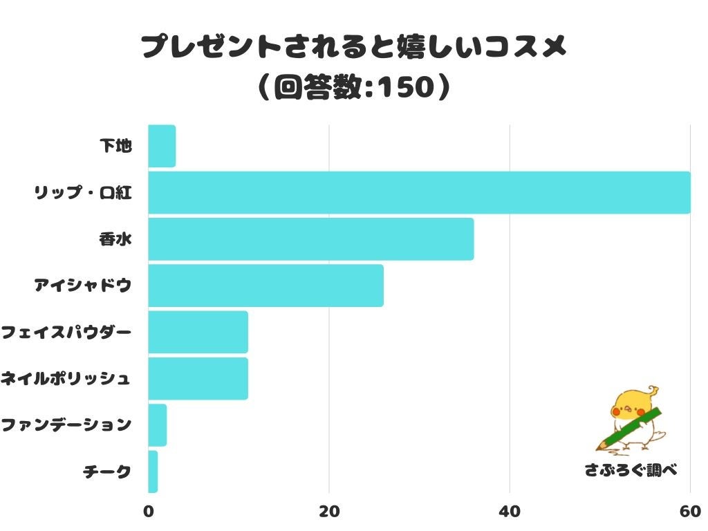 メイクの雰囲気を一気に変えることができるリップは、プレゼントされると嬉しいという結果になりました。