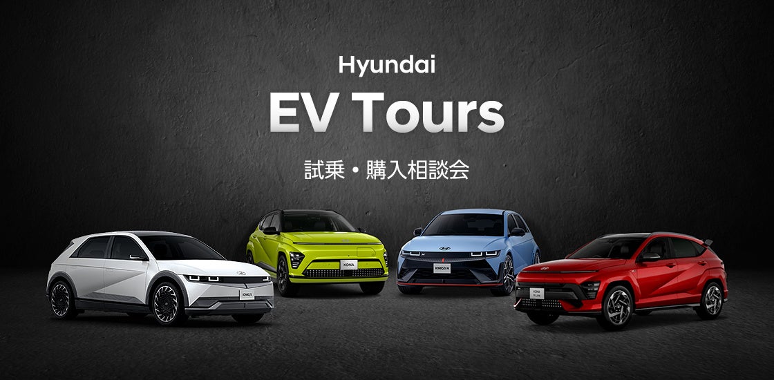 Hyundai Mobility Japan株式会社(本社:神奈川県横浜市西区、代表取締役社長:趙源祥、以下Hyundai)は、2024年9月28日(土)より、HyundaiのEV「IONIQ 5(アイオニック ファイブ )」、「KONA(コナ)」、「KONA N Line(コナ エヌ ライン)」と「IONIQ 5 N(アイオニック ファイブ エヌ)」の試乗・購入相談ができる「Hyundai EV Tours」を7都府県にて開催いたします。