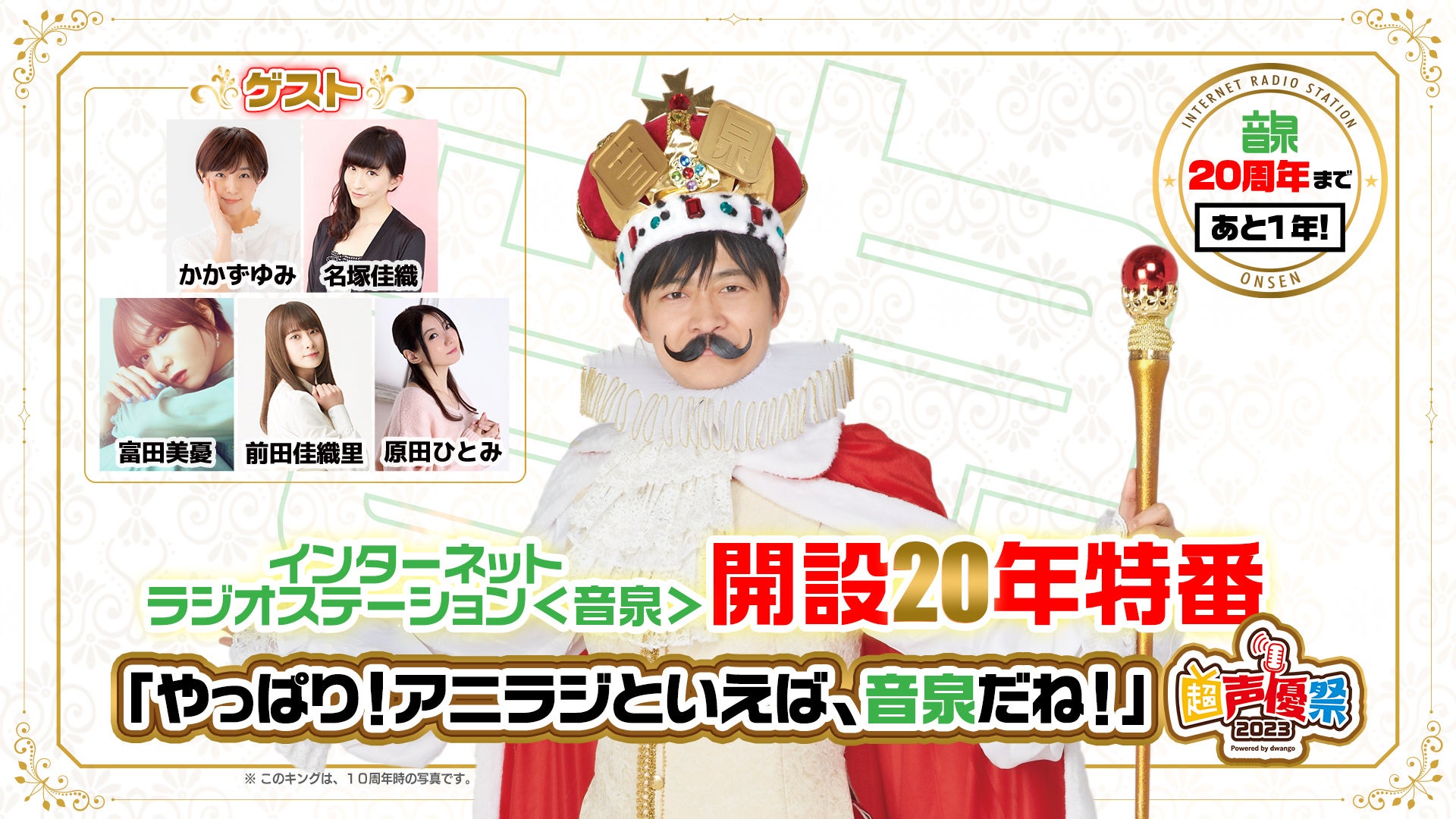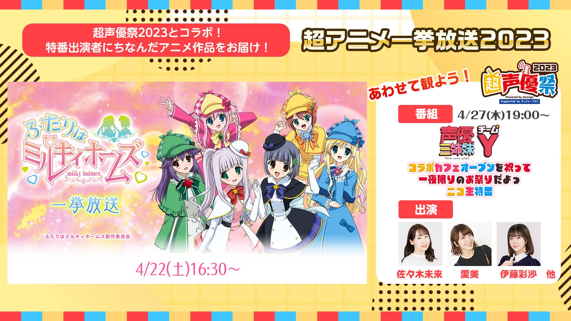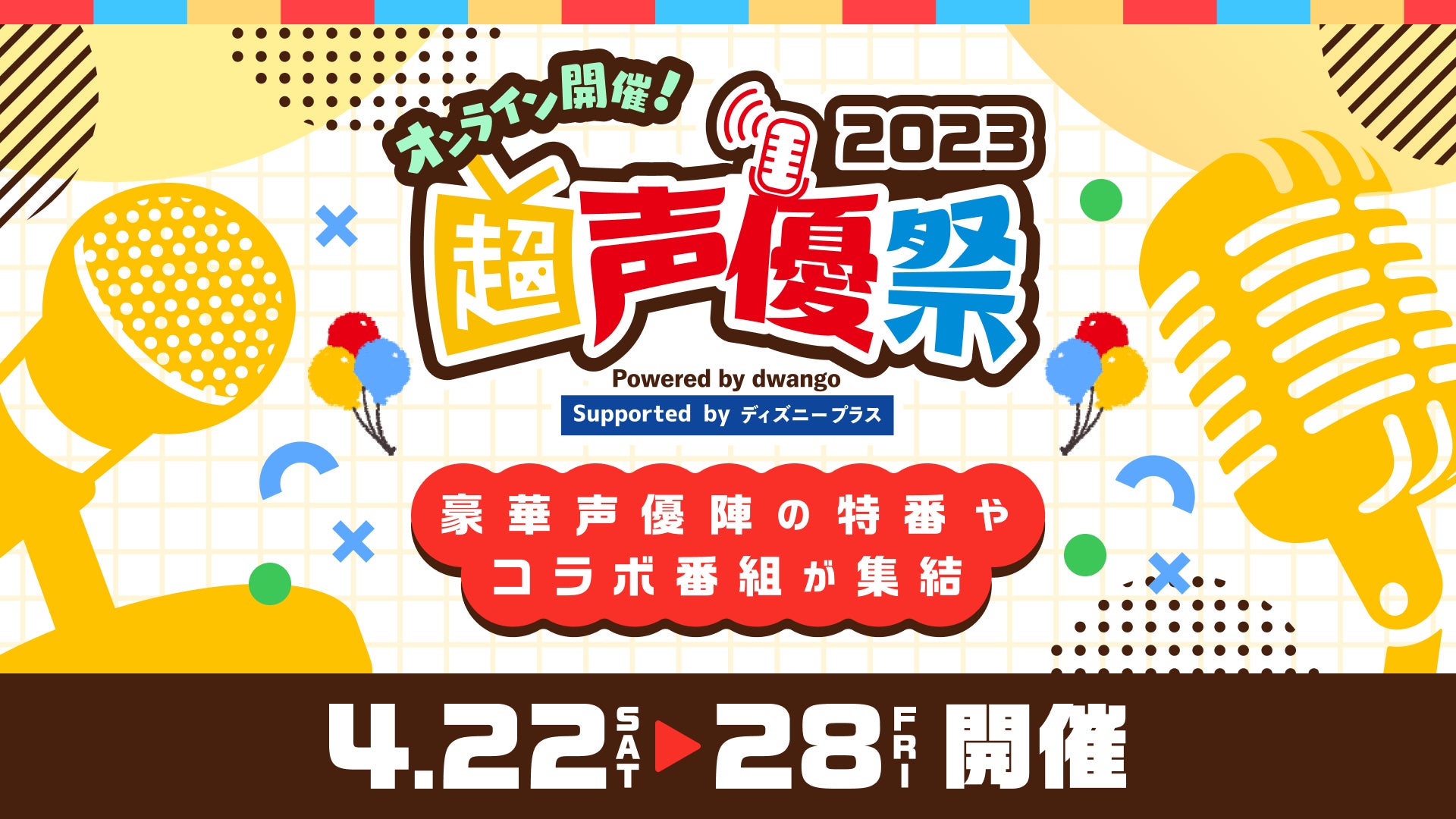 株式会社ドワンゴ(本社:東京都中央区、代表取締役社長:夏野剛)は、同社が2023年4月22日(土)~28 日(金)の計7日間にわたりネット開催する日本最大級の“声優”特化型イベント「超声優祭2023 Powered by dwango , Supported by ディズニープラス」の新情報をお知らせします。