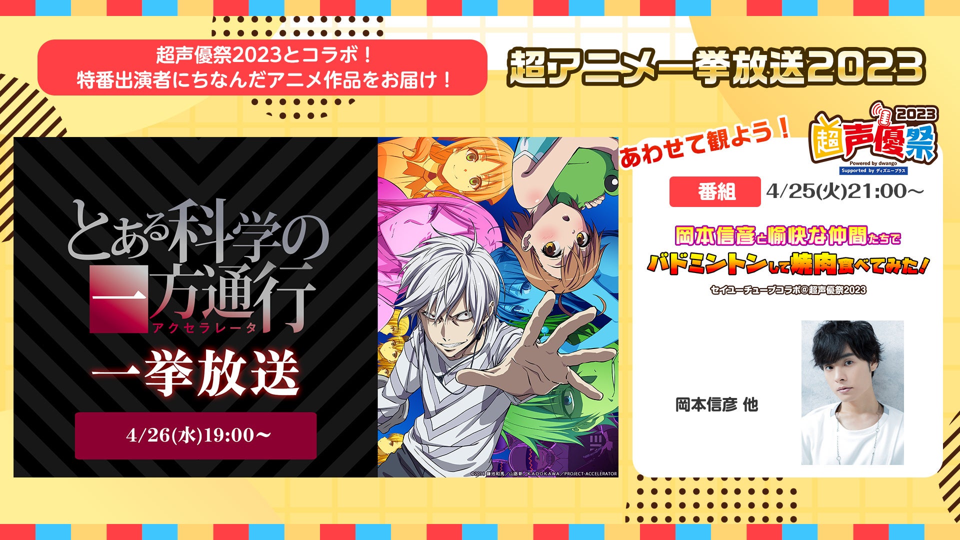 4月25日(火)放送の「岡本信彦と愉快な仲間たちでバドミントンして焼肉食べてみた!セイユーチューブコラボ」に出演する岡本信彦(アクセラレータ役)が声優を務めています。