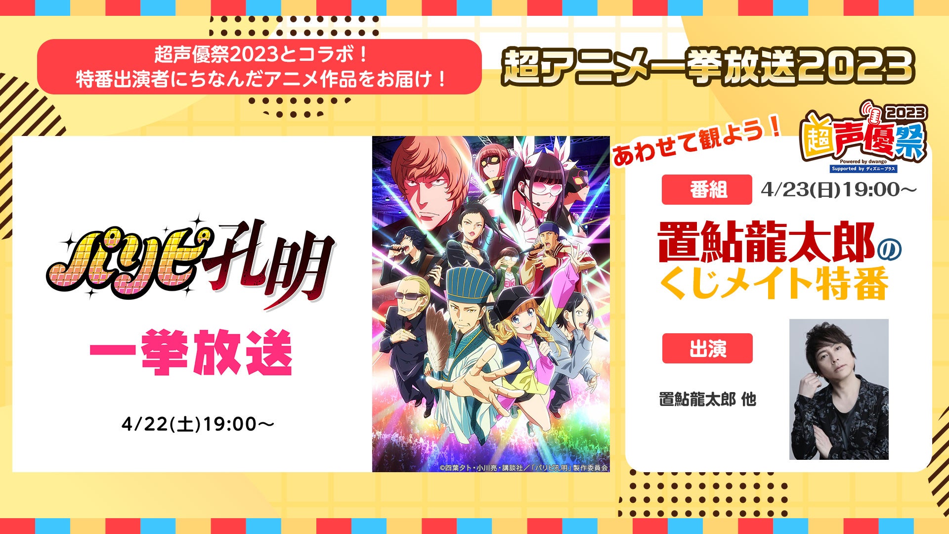 ここでしか見られない人気声優の企画を盛りだくさんでお届けし、昨年は延べ260万人以上が視聴した超声優祭は、今年「声優×○○」をテーマに声優という仕事の枠を超えて様々なジャンルにチャレンジした番組を実施するほか、くじメイト特番やアニメ一挙放送など、バラエティに富んだラインナップでお送りします。