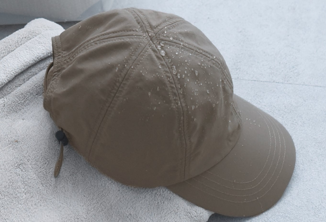 ⑤【レジャーに◎】濡れても安心の撥水キャップ