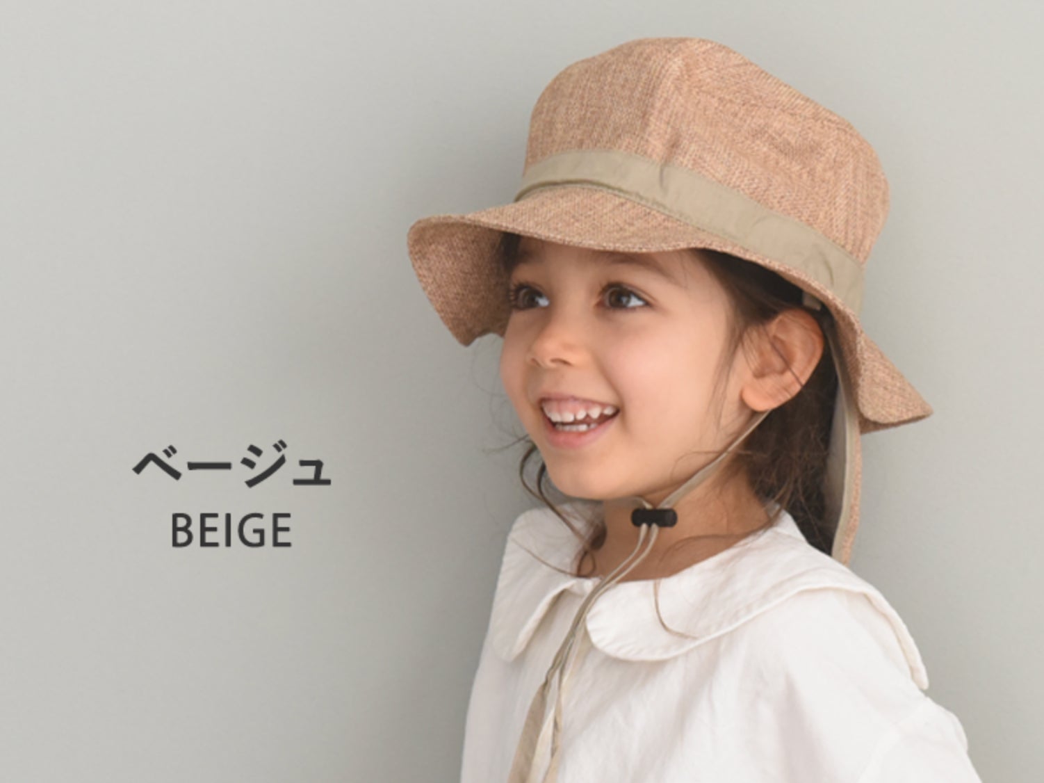 キッズサイズの新作は、ナチュラルな印象でかぶれる「ベージュ」。