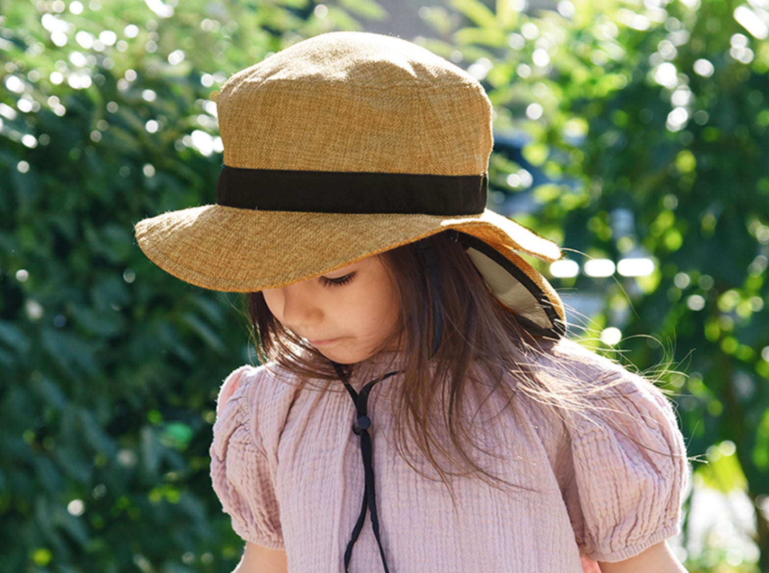 ・kukka ja puu キッズ ジュート風帽子 保冷剤ポケット&日よけタレ付き