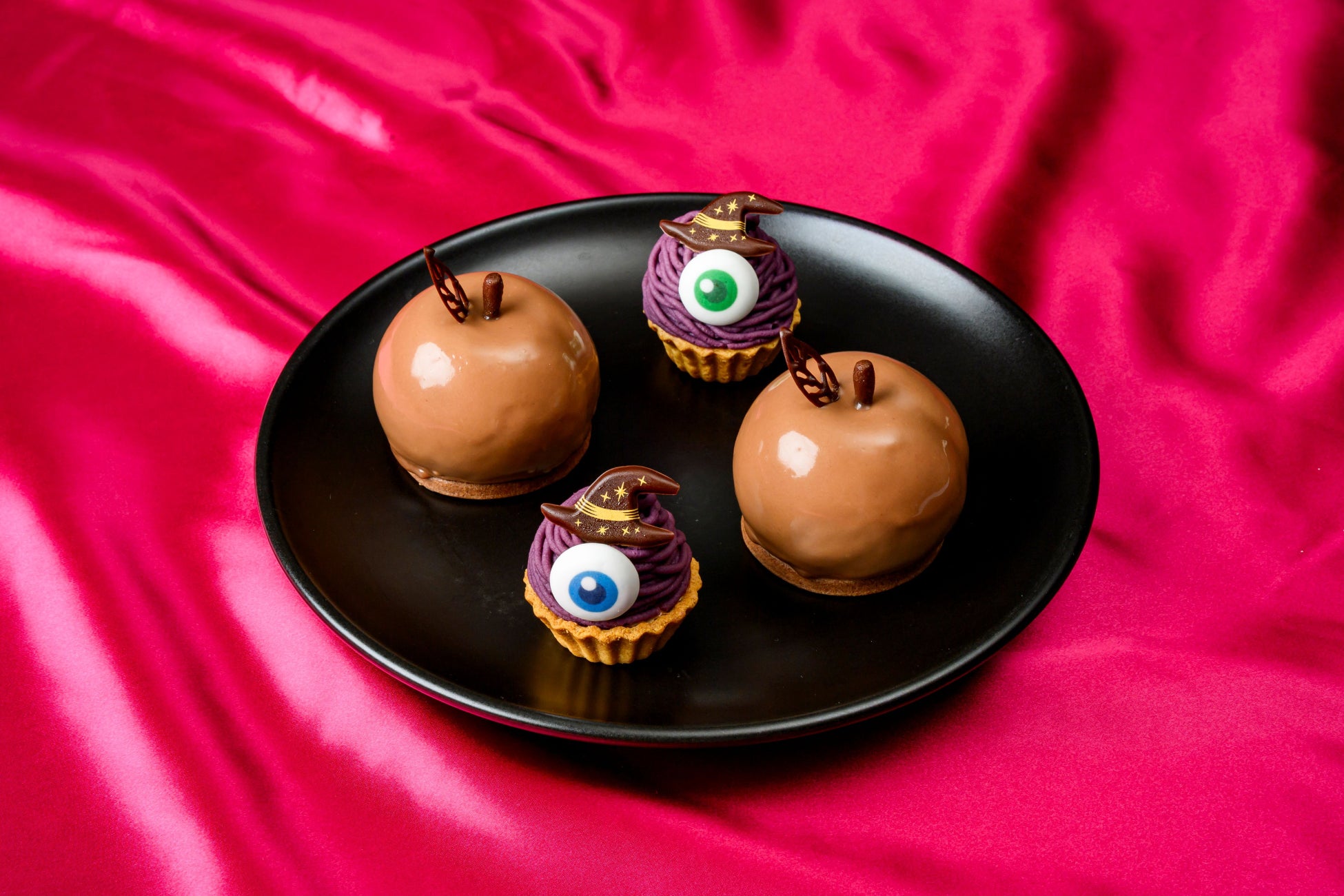 香ばしいクッキータルトにキャラメルムース、仕上げに紫芋餡をたっぷり絞ったモンブラン。目玉と魔女の帽子が愛らしいデザインがポイント。