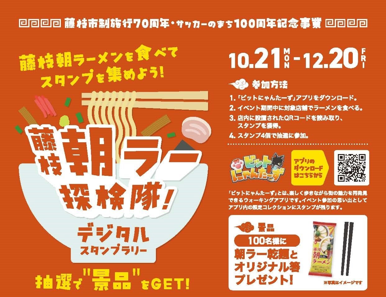 「朝ラー」文化の認知度向上と、ウォーキングアプリと連動した市内周遊の促進を目的に、デジタルスタンプラリーを実施します。