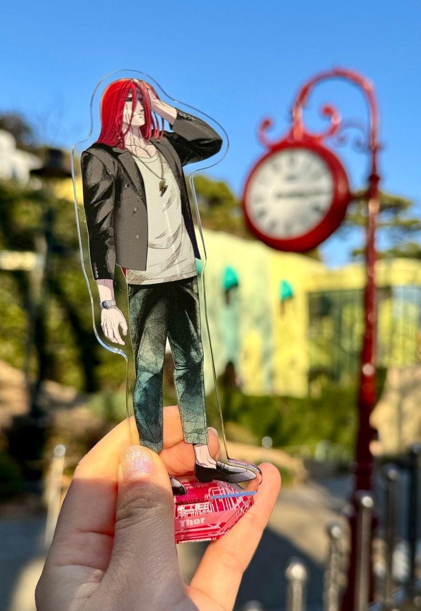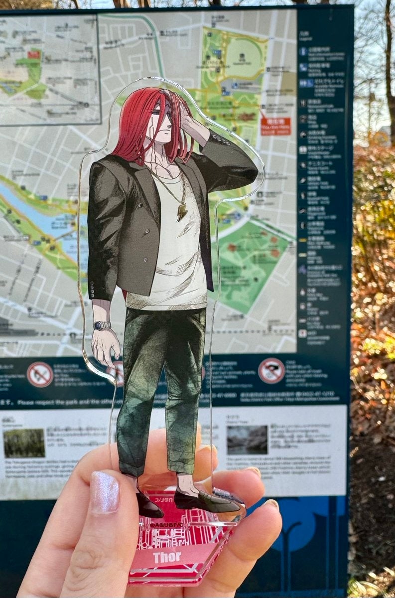 2月1日にコアミックス公式オンラインショップ“ゼノンショップ”で販売を開始した終末のワルキューレ オフショットコレクション「アクリルスタンド トール」が公園で写真を撮っている。しかし、道に迷って困っているようで、頭に手を置く仕草が可愛らしい。