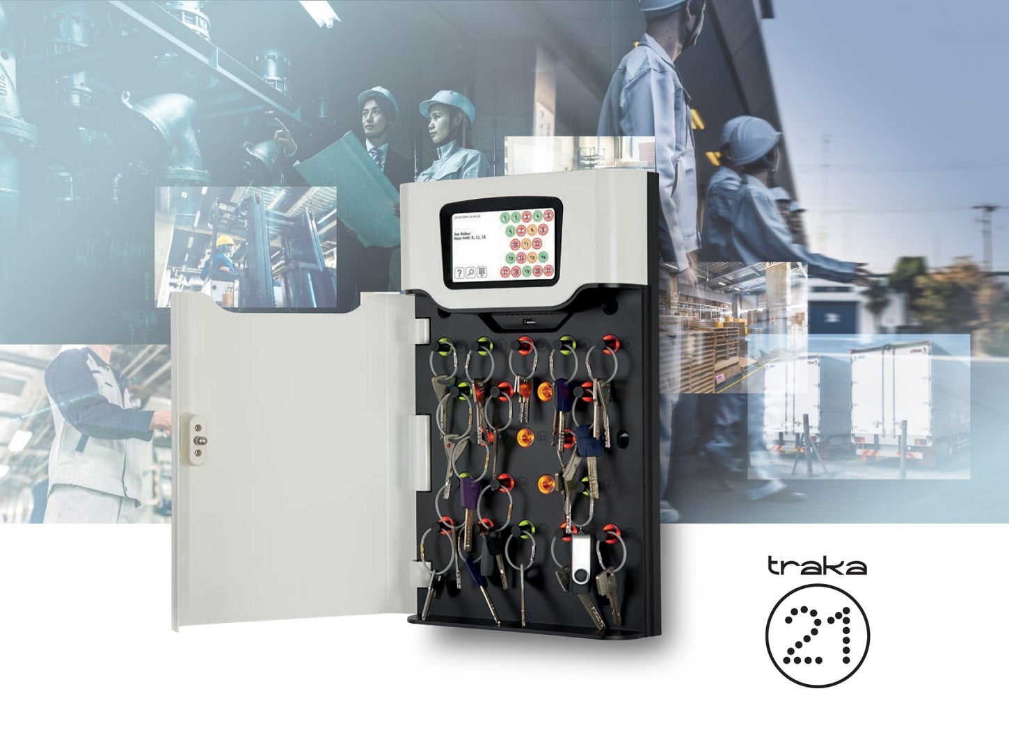 Traka21は、精巧なスタンドアローンの鍵管理ボックスです。 革新的なRFID技術および強健な設計を組み合わせることで、21本のキーあるいは鍵束用の高度鍵管理製品を提供する、中小規模事業向けのお手頃なプラグ&プレイ・ユニットです。