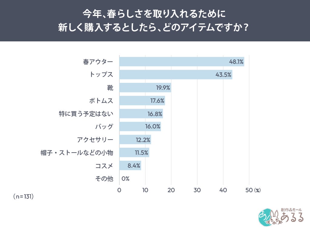 色や小物など取り入れ方が多様に広がる一方で、春を感じるための具体的なアイテムとしては、服そのものを選ぶ人も多いことがうかがえます。