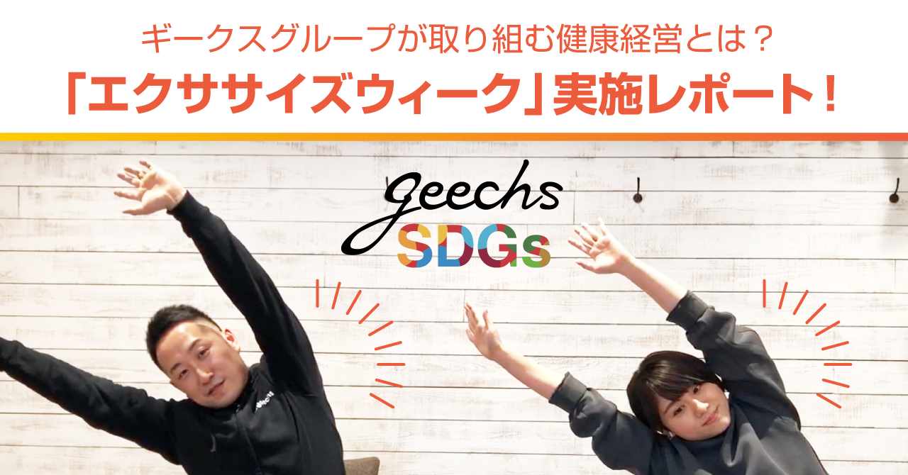 これまでギークスでは、健康経営推進を目的とし、半年に一度「エクササイズウィーク」を開催してきました。コロナ禍におけるリモートワークの拡大、運動機会の減少を背景に、身体を動かす機会の創出を目的としたストレッチ動画の配信やオンラインエクササイズイベントを定期的に実施してきました。
