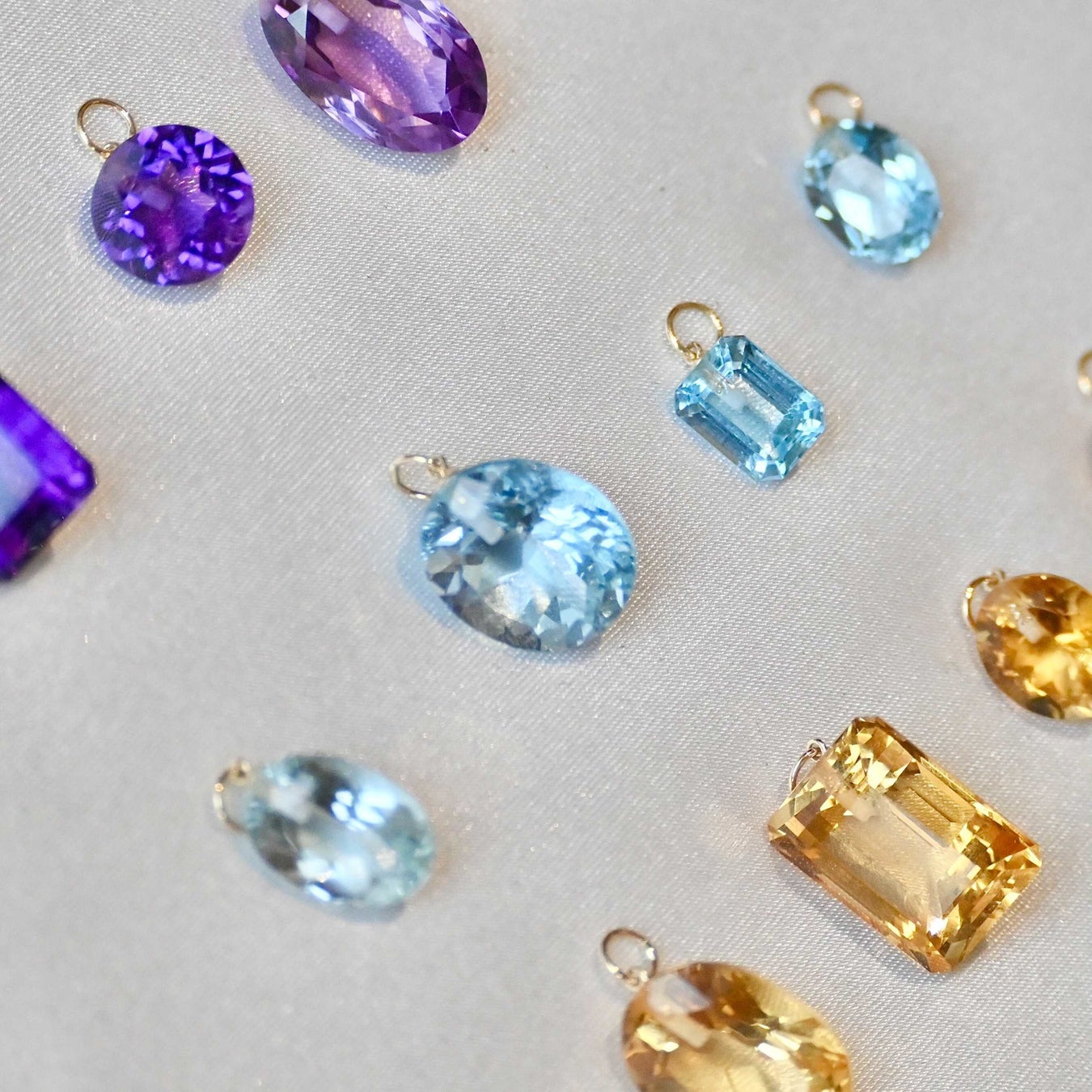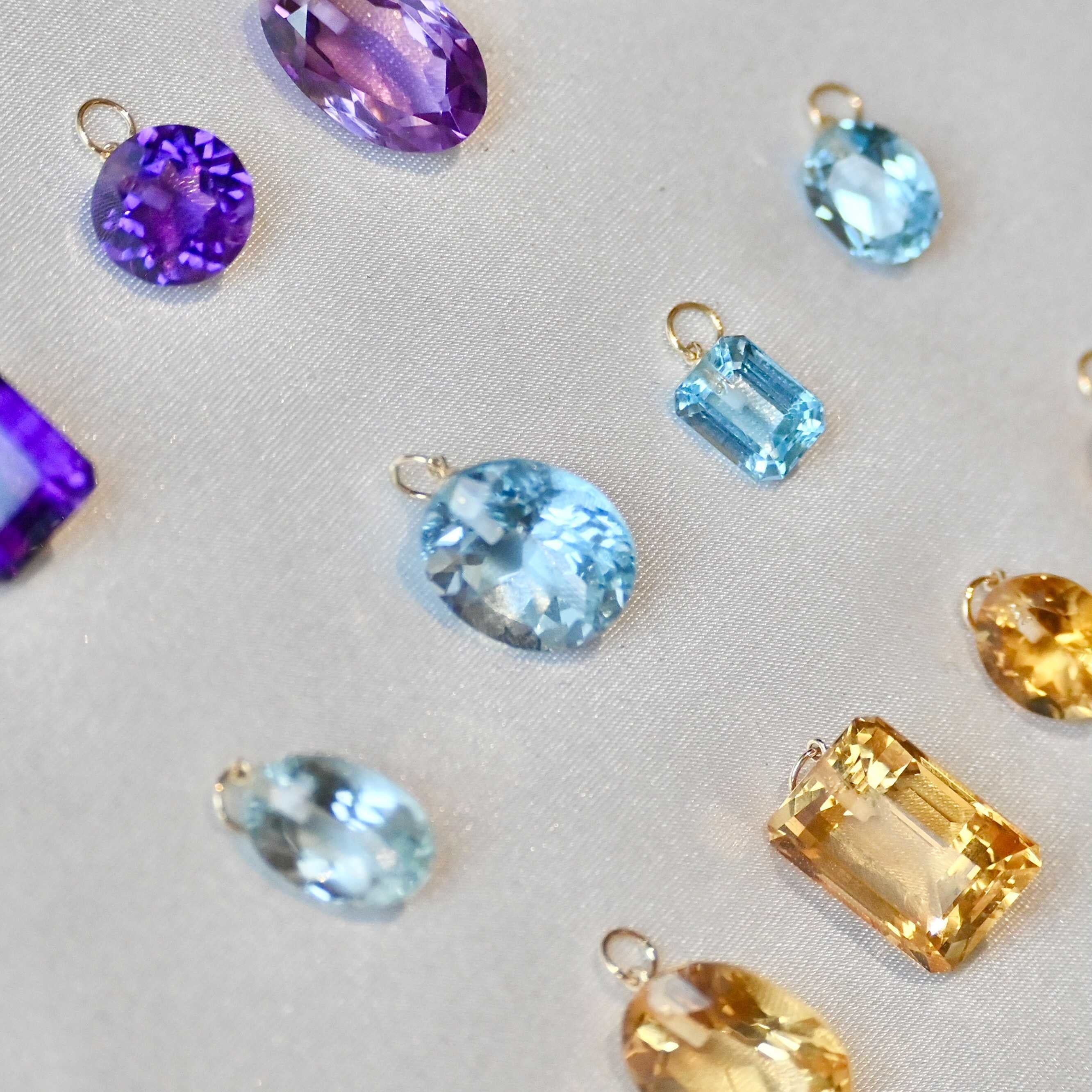 お好きなルース(天然石)とアイテム(ピアス、リング、ネックレス)をそれぞれお選びいただき、世界に一つだけのジュエリーをつくることができる「カスタムジュエリー」のオーダーを承ります。