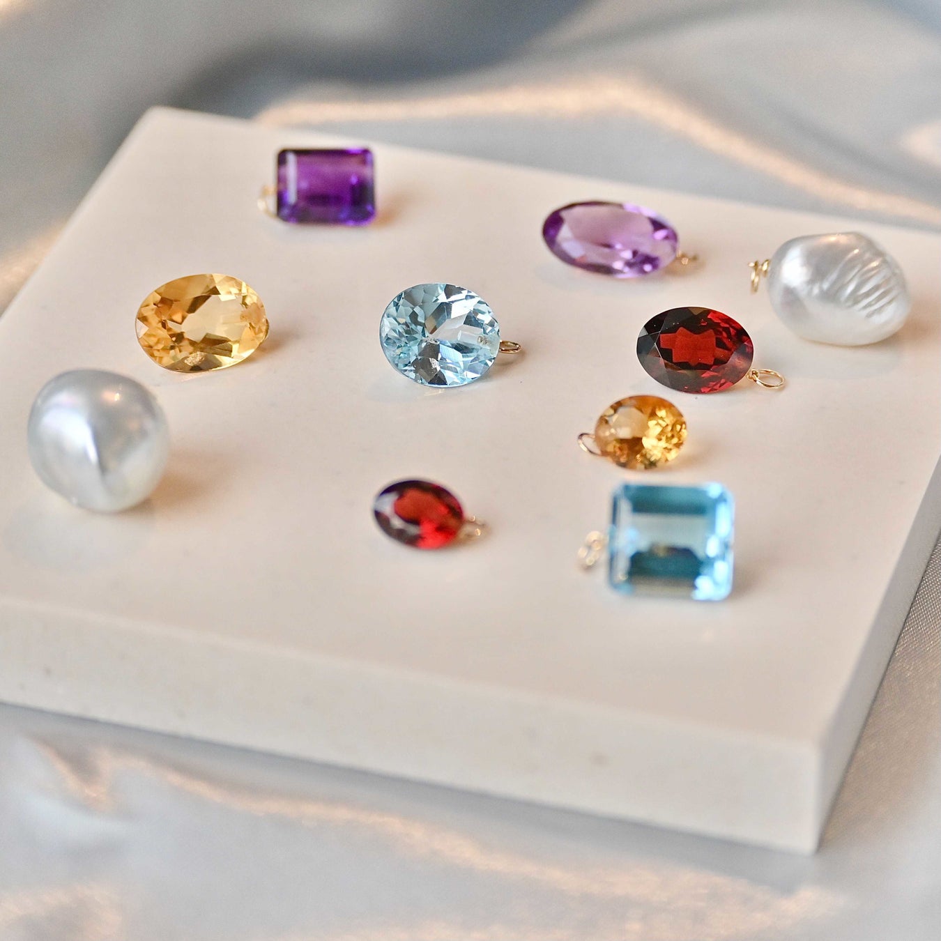 一度ジュエリーとして輝いた天然石やパールをアップサイクルして、新しい姿へと生まれ変わらせました。