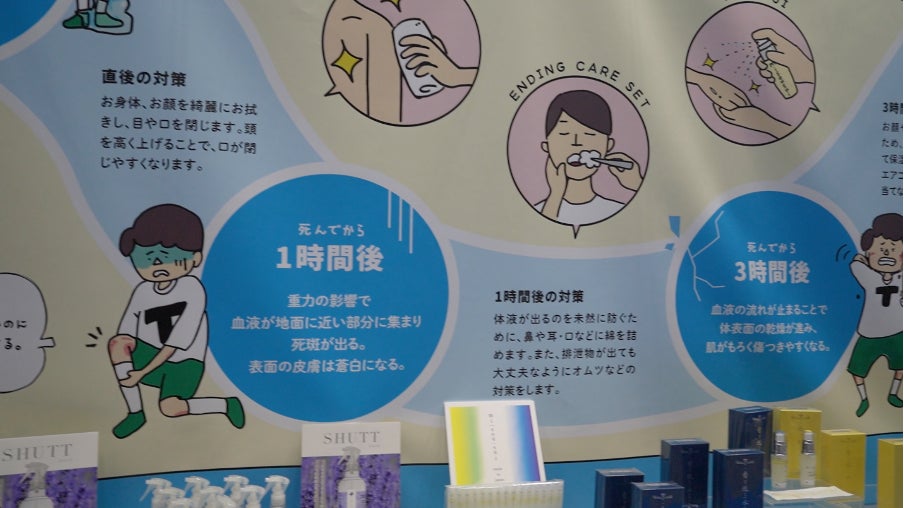 東京博善が運営する総合斎場(葬儀式場併設型の火葬場)の紹介や、日本の火葬の歴史、葬祭文化の未来について展示
