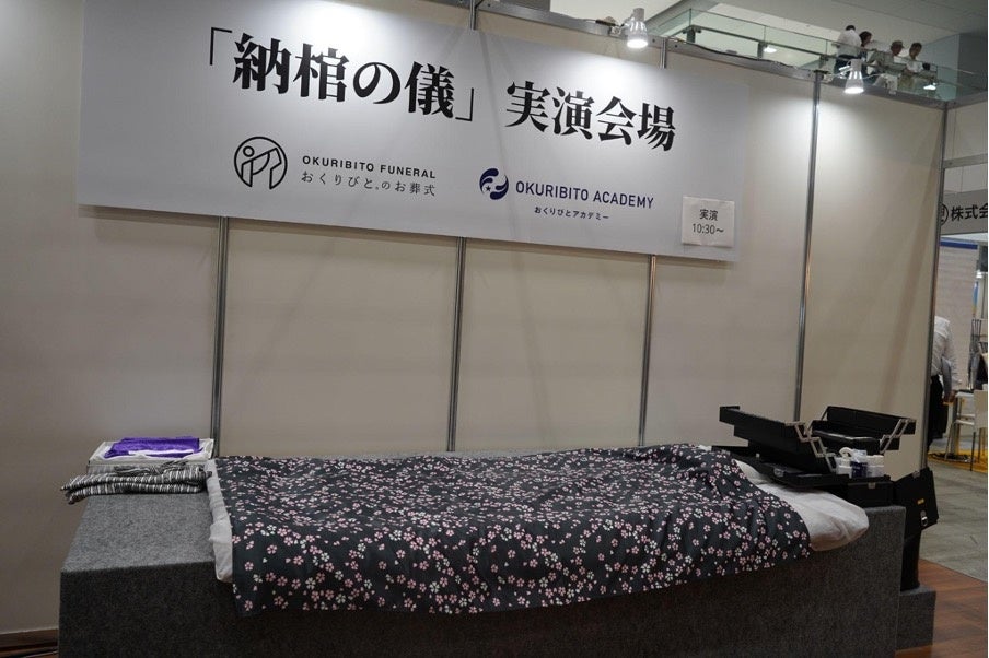 本展示会でしか見ることができない貴重な実演を多数のブースで開催中です。「納棺の儀」の実演