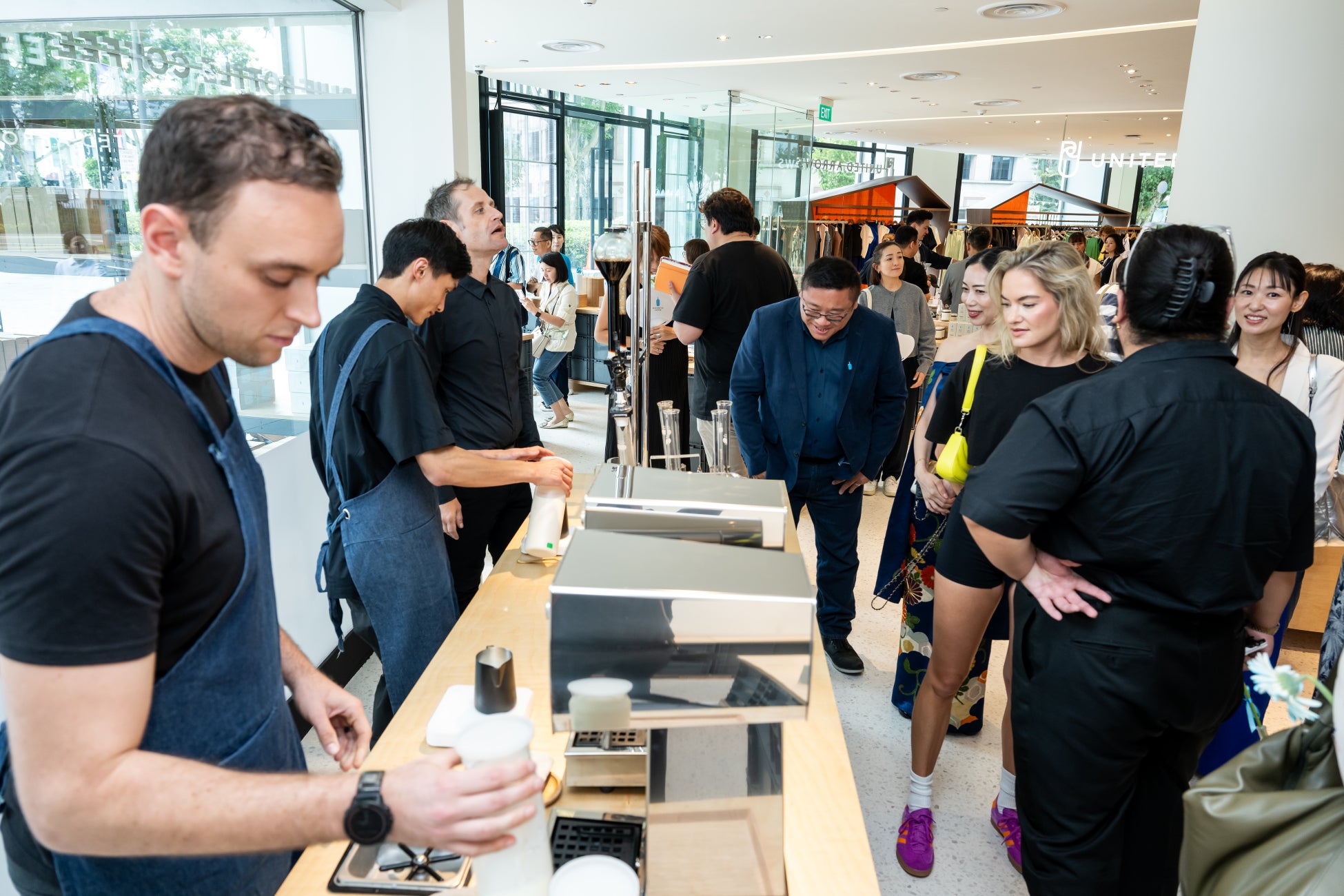 ルミネの海外店舗では初めてショップインショップ形式でブランドの世界観を表現した店内も、お客さまから大好評。既存の顧客さまをはじめ、初めてご来店された方も、多くのお客さまにルミネならではのショッピング体験を楽しんでいただきました。特に、東南アジア初上陸のBLUE BOTTLE COFFEEでは、世界的なバリスタが来店し、スペシャルコーヒーセミナーも開催されました。